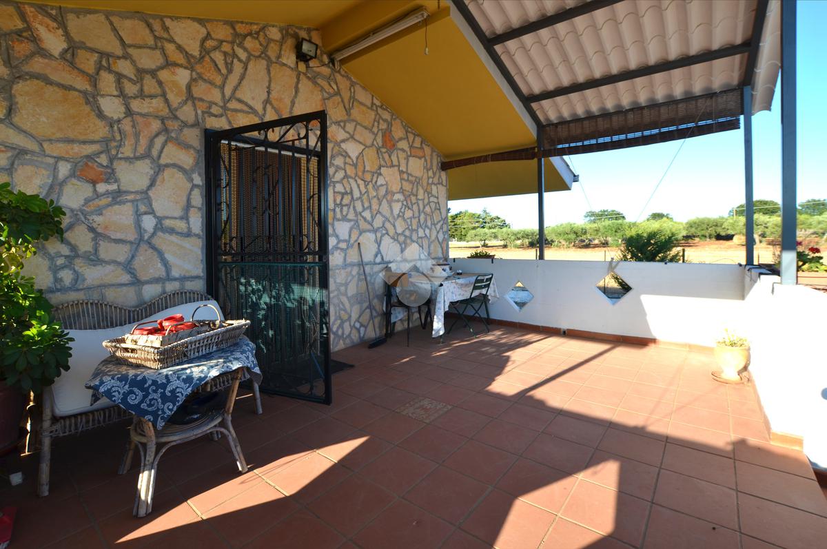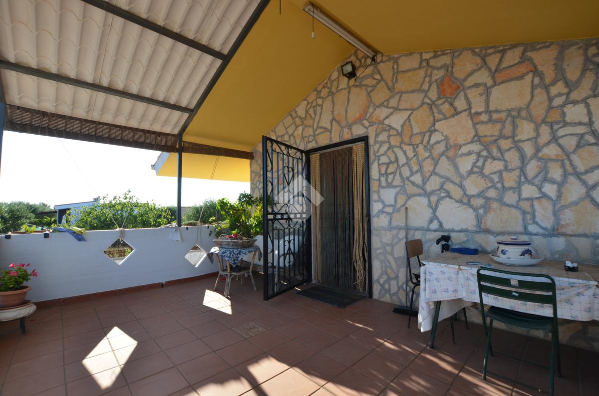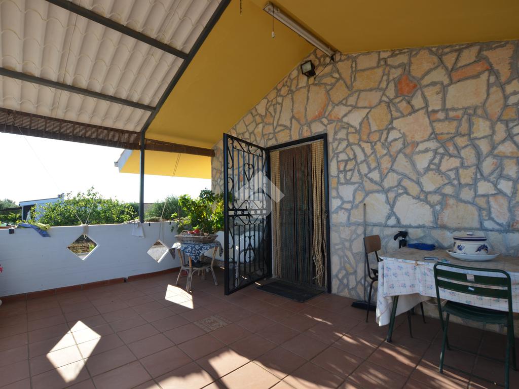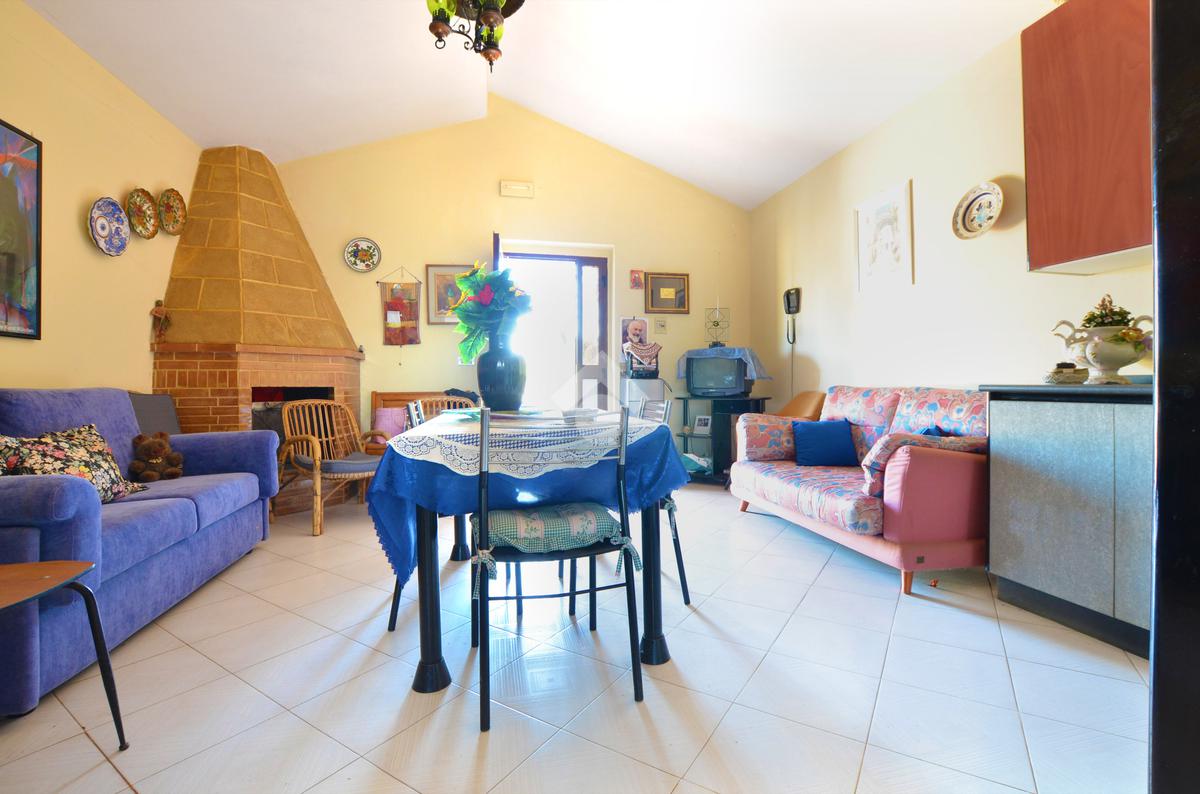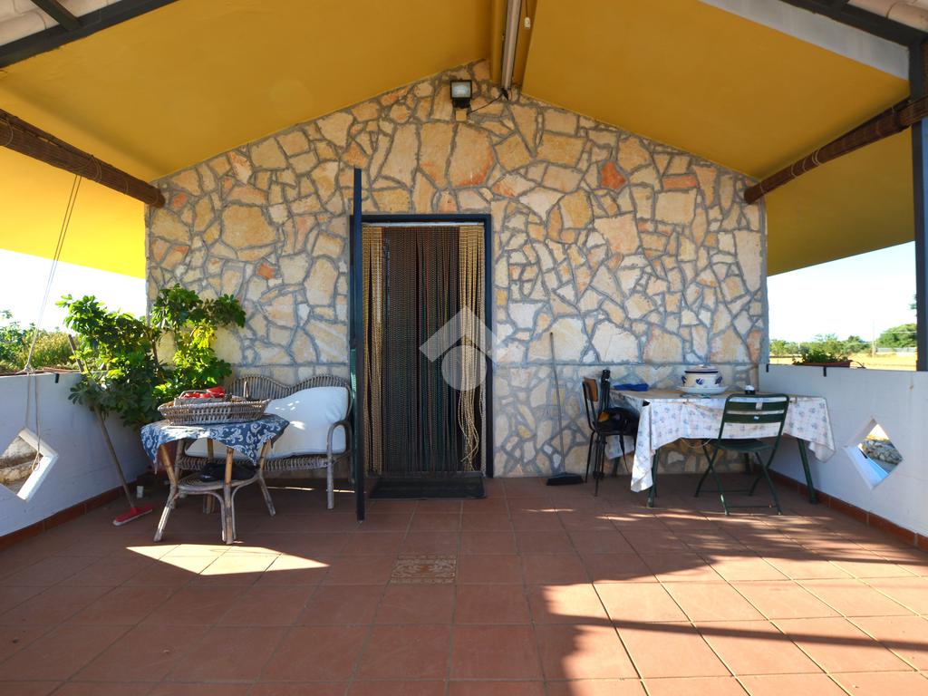 La soluzione presenta un ampio piazzale d'ingresso completamente pavimentato e l'intera proprietà è totalmente recintata. Il vano principale si sviluppa su due livelli, sul primo troviamo un ampia veranda da cui si accede all'interno dove c'è il soggiorno con camino, un cucinino e un bagno completo.